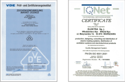 ELEKTRA ima certifikat sustava za kontrolu kvalitete ISO 9001 i IQ NET.