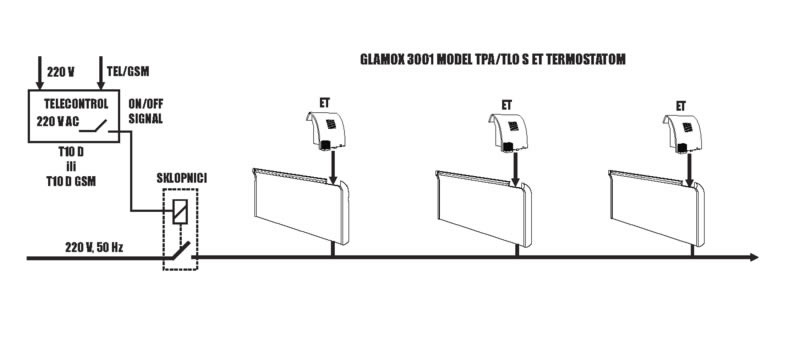 Telefonski upravljana grupa grijalica GLAMOX 3001 sa ET termostatom.